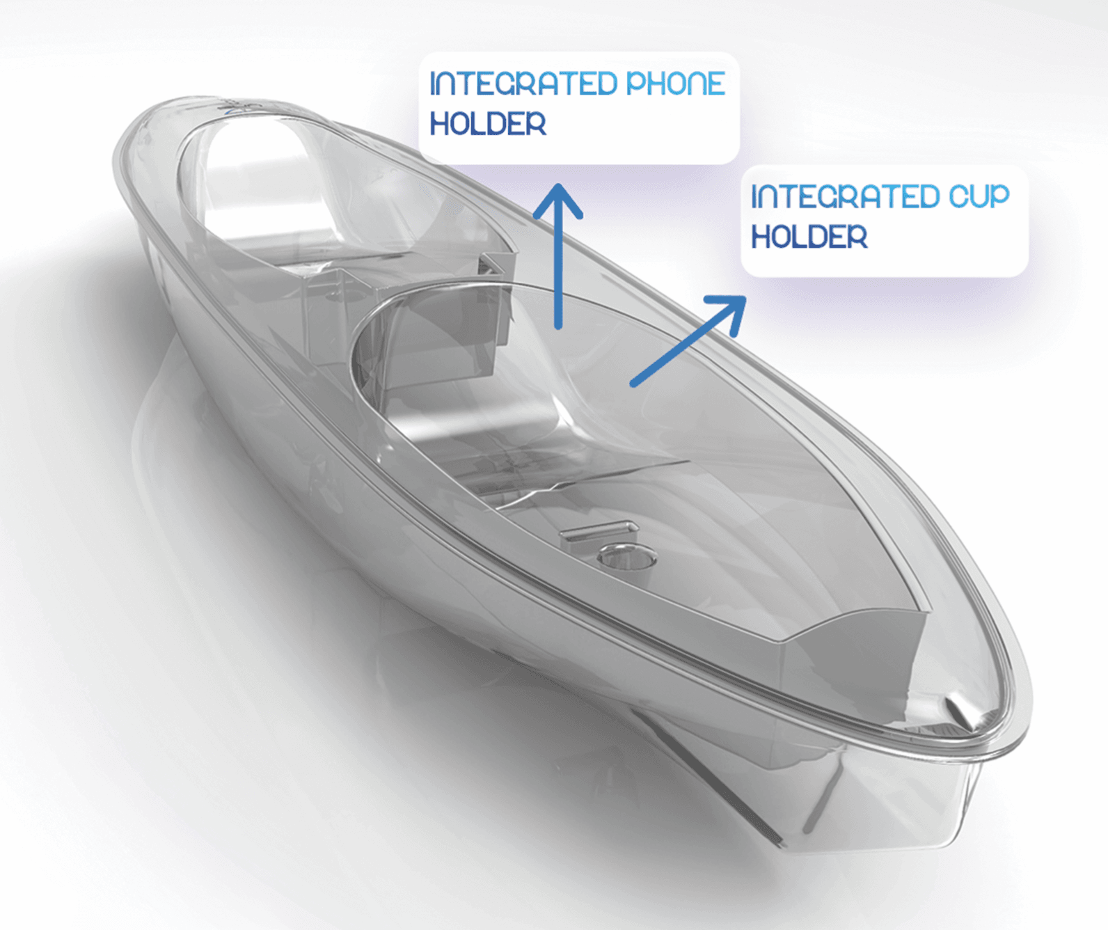 The phone holder and thermos/bottle-compatible drink holder positioned for easy access provide comfort and safe usage during paddling.